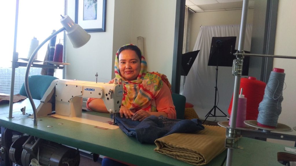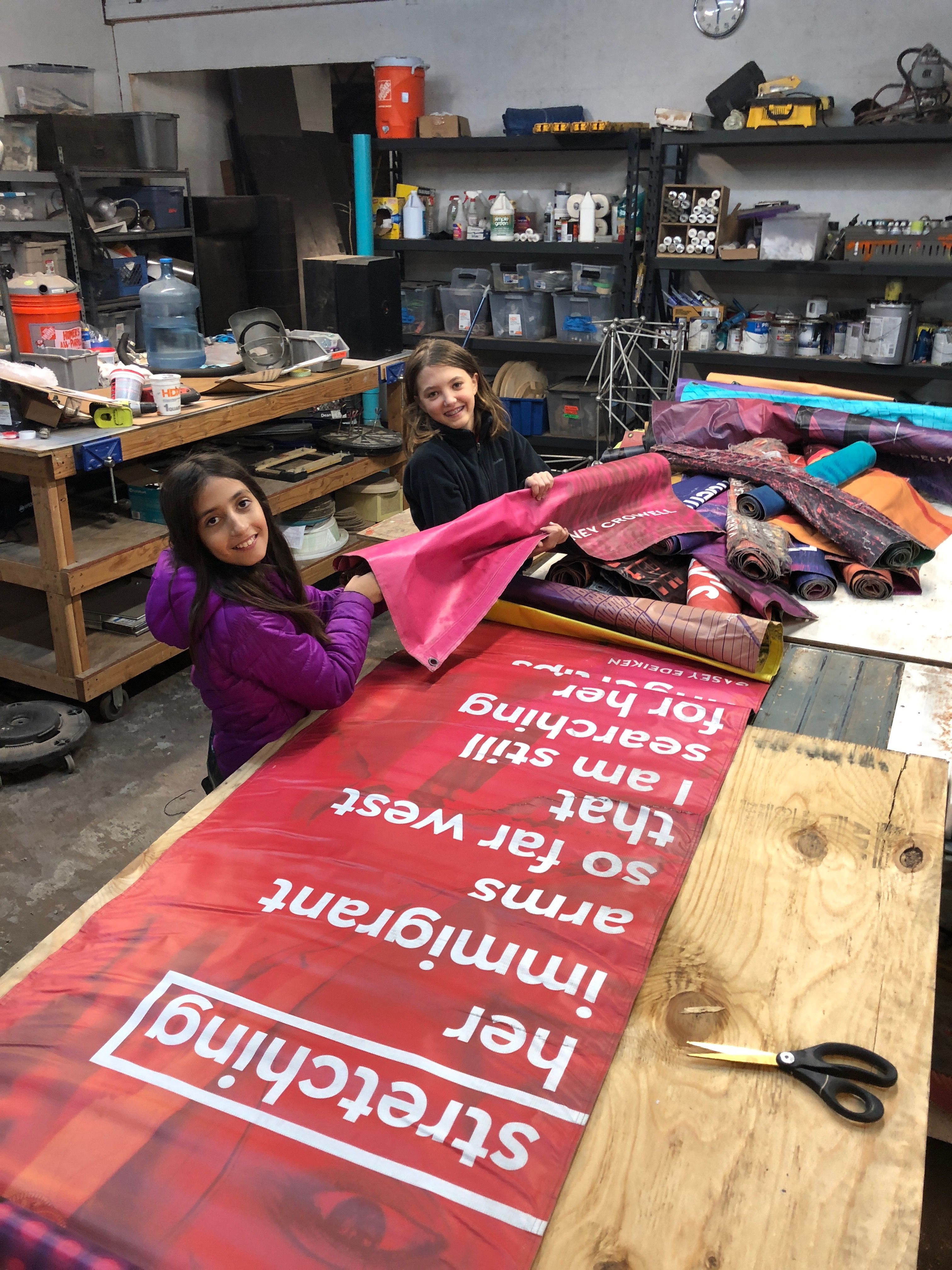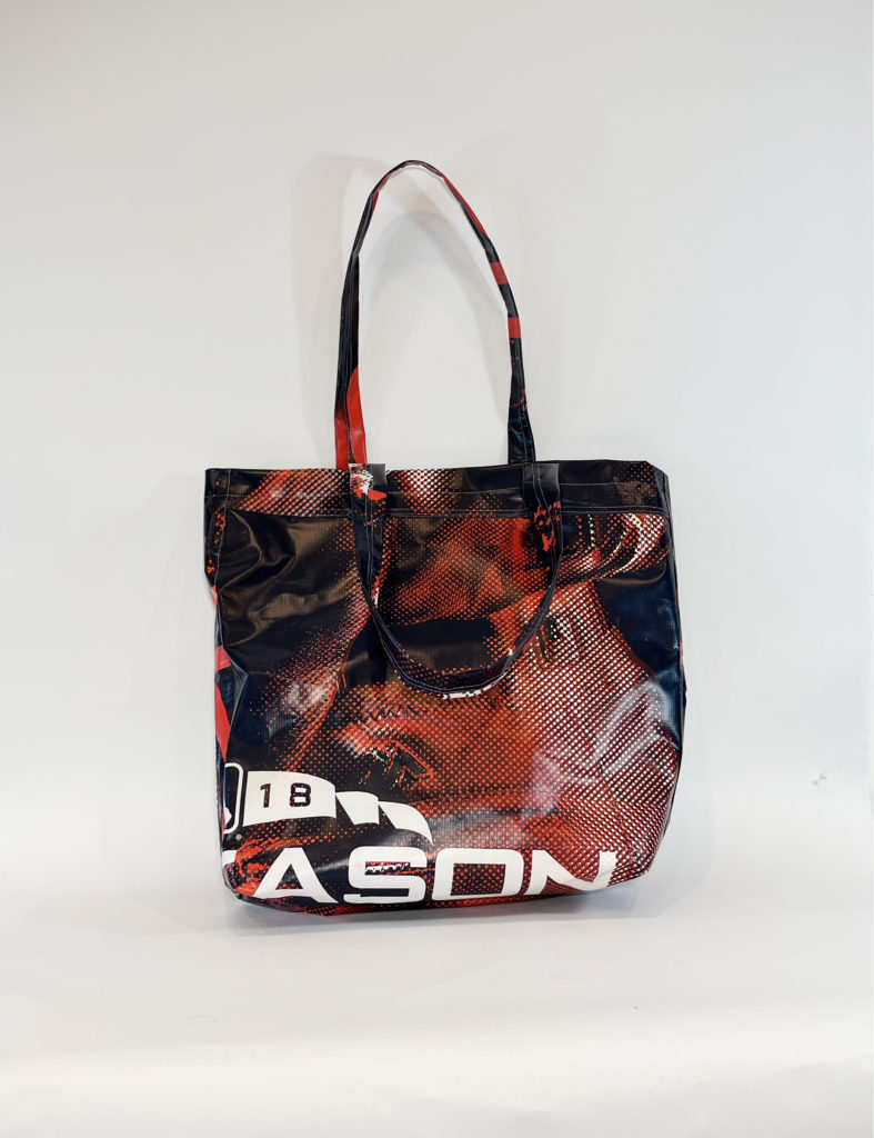 After receiving a grant, we started our non-profit to make bags out of upcycled materials. We first experimented with t-shirts and jeans but quickly moved to banners after Downtown Houston offered us their old banners that were on their way to the landfill. We reached out to The Community Cloth, an organization that connects refugee seamstresses with work, and met Khatera, an Afghan refugee who was excited to work with us.