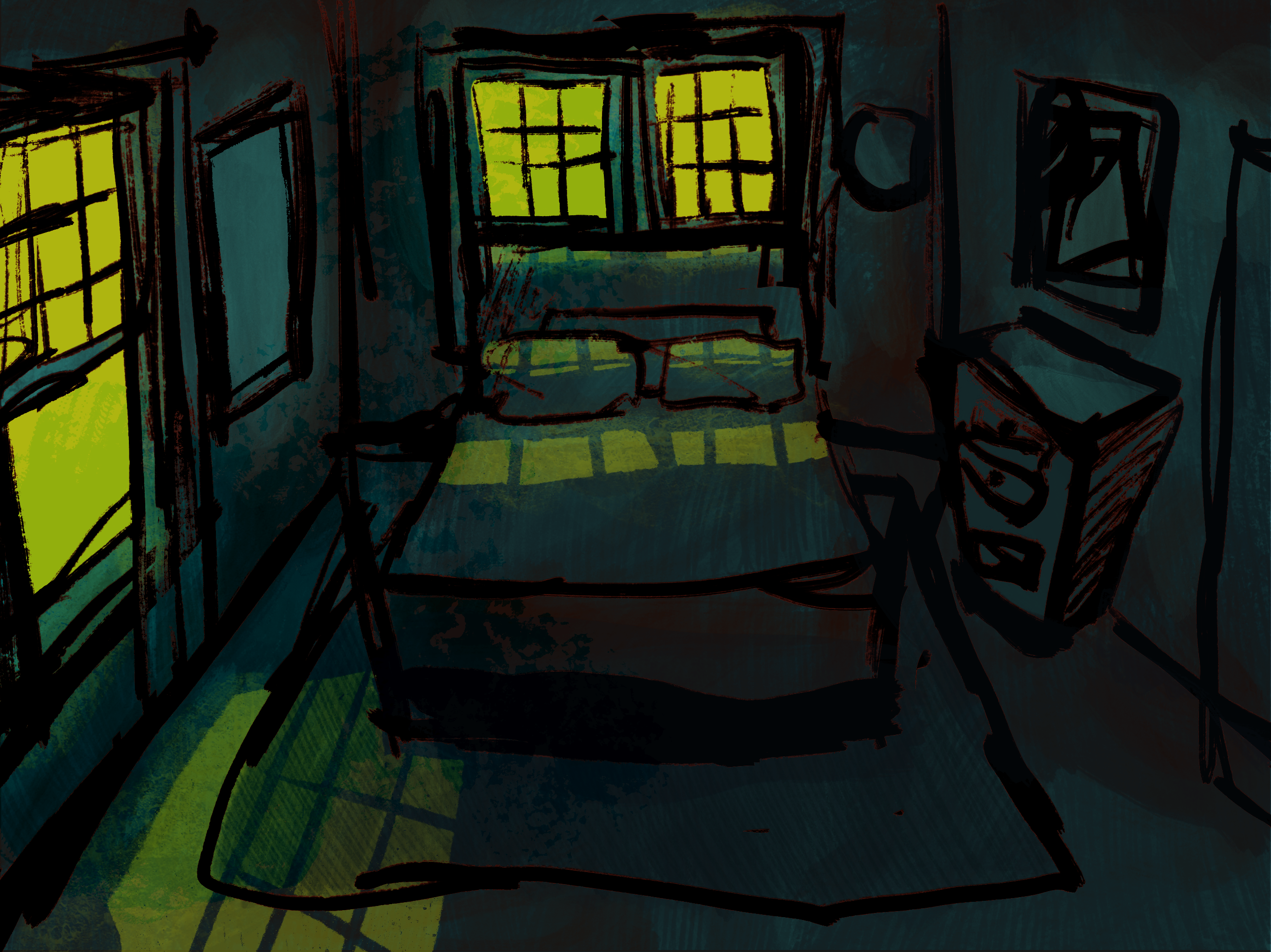 This film is an exercise to experiment with different mediums and styles and stretch the idea of what a film could be. This film is the first real film and animation I have created. The concept that I drew from was the guest bedroom in my house, which is often referred to as “Grandma’s Bedroom” as my grandma used to stay in it when she visited. Ever since I can remember, the guest bedroom has haunted me. The darkness of the hall leading up to it coupled with the door always brings shivers down my spine. But the fear of ghosts was not the only thing bothering me. My family has a history of psychic abilities and ways of communicating with the dead that have been passed down through the generations. My Aunt and Grandma both had this ability and when I was born, my Aunt claimed I had this gift as well. Both my Aunt and Grandma passed in the last two years, and I never got the chance to ask my aunt what she meant by this. As I got older, I viewed the guest bedroom as a portal or connection to the other side.